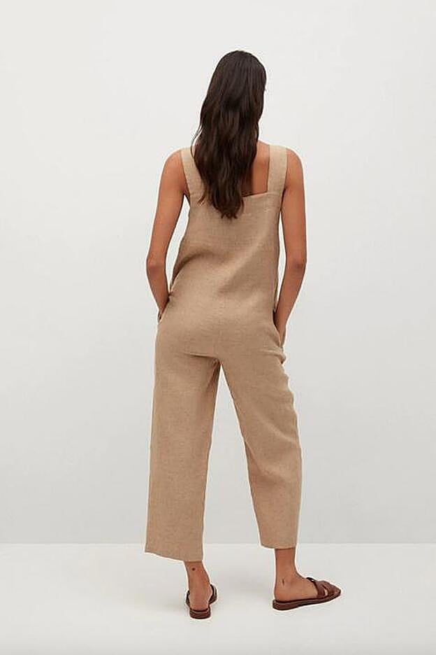 Este bonito mono de lino de Mango forma parte de la colección sostenible de la firma y es de diseño oversize y recto.