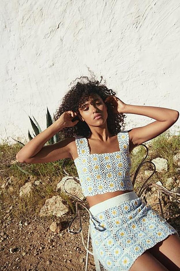 Compuesto por un top y una minifalda, aunque creas que a estas alturas de la temporada ya lo has visto todo te va a conquistar por su bonito diseño y su color. Porque no hay nada más apetecible para las próximas semanas de calor y buenas temperaturas que un precioso azul celeste y un estampado de margaritas.