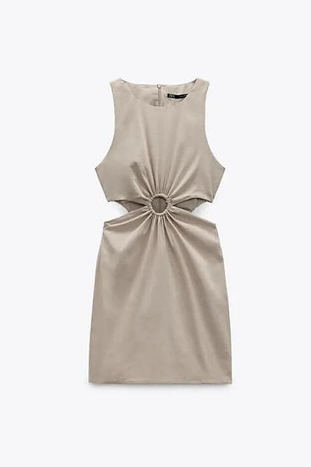 Ahora bien, si prefieres una versión corta, debes saber que en Zara hay un modelo con hebilla que está arrasando. Es uno de los vestidos que más éxito está teniendo actualmente y tenemos que reconocer que también es ideal. Se trata de un vestido mini sin mangas con cuello redondo y confeccionado en tejido de lino.
