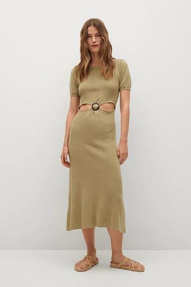 Nos referimos a un diseño que lleva como protagonista una hebilla que va acompañando el famoso cut out en la cintura. La influencer Verónica Díaz ha sido de las primeras en unirse a esta tendencia y lo ha hecho con un vestido de Mango ideal. Se trata de un modelo midi en color verde en tejido mezcla de lino y algodón que tiene un diseño de corte recto y maga corta ideal.