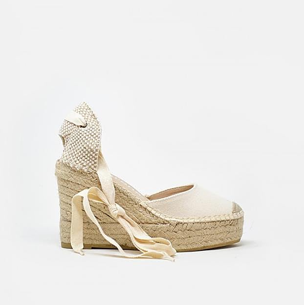 Entre algunos de sus modelos de alpargatas más populares, encontrarás este. Se trata de una alpargata de cuña con plataforma elaborada en algodón orgánico y color crudo. Cuenta con un cierre de cintas de algodón para sujetar bien el tobillo. Tiene una altura total de 11,5 cm, aunque son muy cómodas gracias a la plataforma. Está elaborada a mano por artesanos y tiene un precio de 69,90 euros.