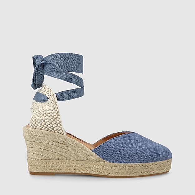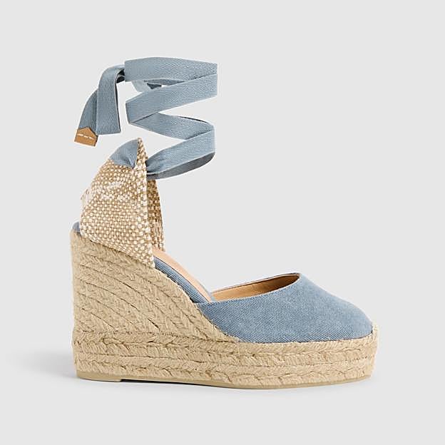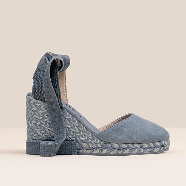 Carina es el modelo icónico de alpargata de Castañer que vuelve cada temporada para convertirse en un imprescindible atemporal de tu fondo de armario. Confeccionadas en España en algodón orgánico certificado y acabado lavado sostenible, presenta puntera cerrada redondeada, cierre mediante lazada, cuña de 11cm con doble plataforma de yute y suela de caucho vulcanizado. Y lleva ese tejido denim ideal que combina con todo. Precio: 120 euros.