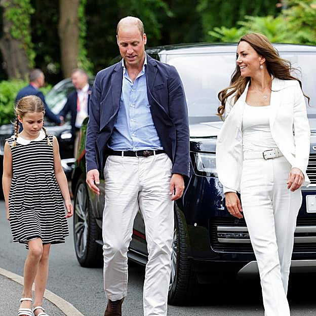 Para la ocasión, Kate luce un total look en blanco compuesto por pantalón de traje, blazer y camiseta de tirantes. Acompañando este estilismo veraniego y fresquito, la duquesa de Cambridge apostó por unas bailarinas clásicas destalonadas con un poco de tacón.