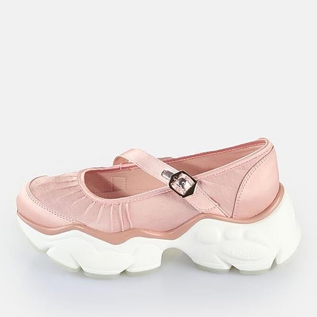 Bailarina de satén rosa de Buffalo. Tiene correa ajustable para un buen ajuste, una cómoda plantilla de Memory Foam y una suela con plataforma. Están rebajadas a 90,90 euros.