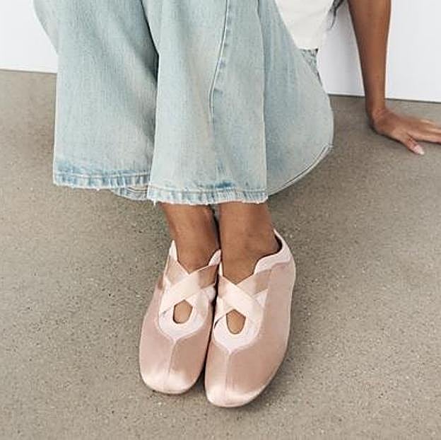 Amamos estas bailarinas planas tipo bailarina deportiva en tejido satinado de Zara. Llevan doble cierre mediante tiras elásticas cruzadas y son de color rosa. Cuestan 22,95 euros.