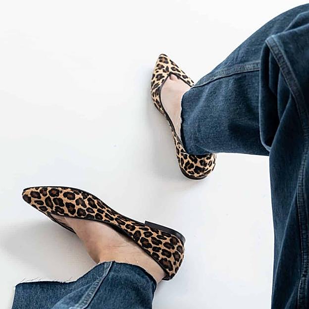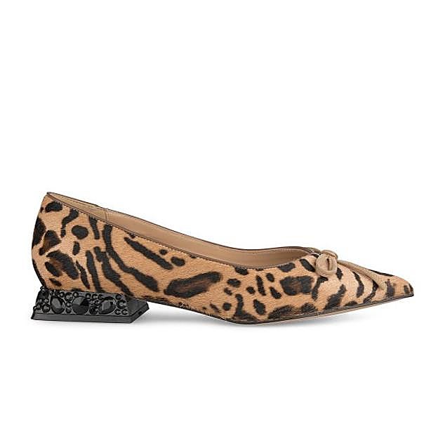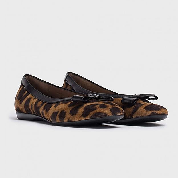 Está hecha de piel de potro con estampado de leopardo, y tiene el tacón perfecto (2,5 cm) para estilizar la figura y para que vayas cómoda durante todo el día. Su forro de tejido de piqué de algodón las hace más flexibles y cómodas todavía. Son de Adeba y cuestan 189 euros.