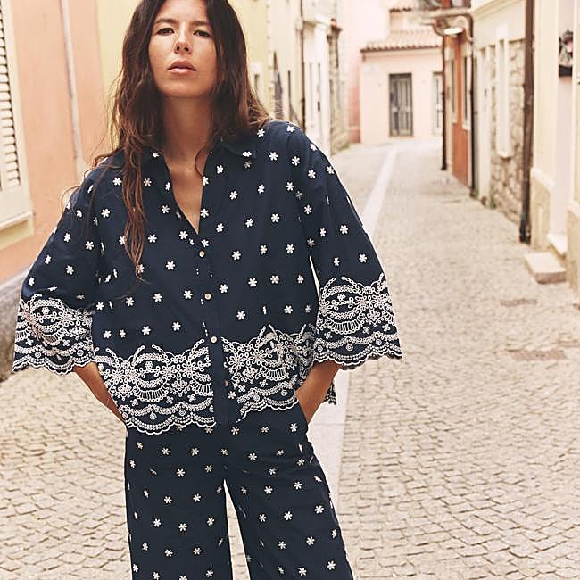Y en esta selección no podía falta una buena blusa con bordados de corte oversize. Llévala en total look con unos pantalones a juego. El azul marino, con detalles en blanco, serán los colores más buscados.