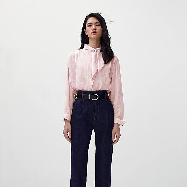 El modelo de Massimo Dutti es de lo más femenino y sienta a las mil maravillas. Te vas a enamorar de esta camisa confeccionada en tejido fluido con textura, manga larga con puño abotonado y cuello lazada anudado al lateral, en tono rosa palo. Casi agotada, solo quedan disponibles las tallas 40 y 42 en web, por un precio de 59,95 euros. Aunque, puedes buscarla en tienda física.