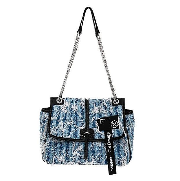Para las más originales y las que buscan siempre un estilo urbano en sus estilismos, recomendamos la opción que tienen a la venta en Mod Wave Movement. Es un bolso diponible en dos tonos de denim con un acabado desflecado, remates en color negro y asa de cadena. Precio: 125 euros.