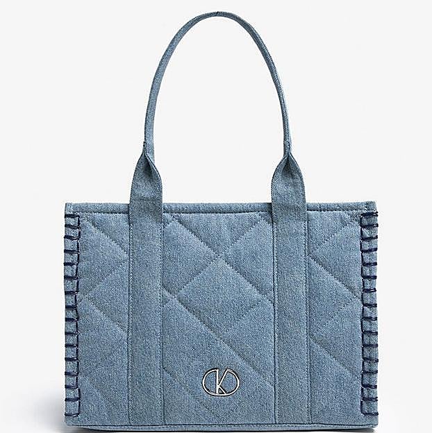 El modelo Bolso Shopping Denim Kalk se caracteriza por su forma grande y cuadrada y su doble asa al tono de diferentes largos: opta por la opción de asa corta para aportar sofisticación o por la opción de asa larga si prefieres ganar mayor comodidad. Precio: 79,99 euros.
