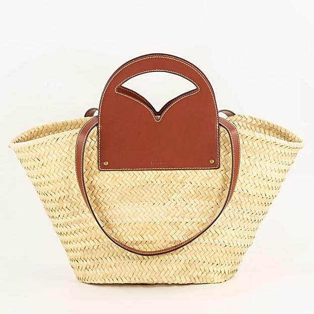 Esta es una cesta de paja trenzada y tejida a mano con bandolera y asa distintivas en piel de vacuno. Dado que este modelo se trenza a mano, puede presentar irregularidades que hacen que cada pieza sea única. Precio: 195 euros.