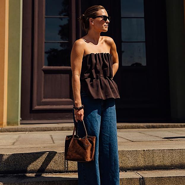 Si hablamos de bolsos grandes, elegantes y con muchísimo estilo, no podemos pasar por alto el Tote Maxi Gabin de Sézane, un bolso XL en el que merece la pena invertir. Y no solo por lo cómodo que es y lo fácil de combinar que resulta (tanto en la rutina como a modo de maleta pequeña para una escapada), también por lo mucho que favorecen sus colores y acabado de serraje en esta temporada.
