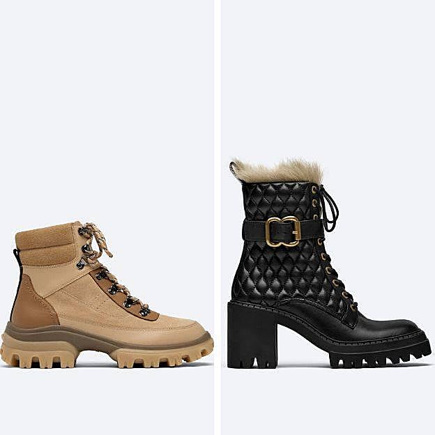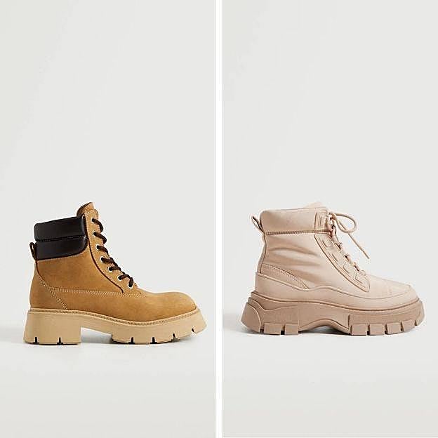 Por su parte Zara se centra en el confort absoluto y la versatilidad. Elige entre un botín con materiales combinados, suela gruesa y cordones a tono, en verde caqui, por 69,95 euros. Unos botines de estética clásica estilo montañero con parte trasera acolchada y suela engomada, en marrón, a 39,95 euros. O, un modelo extra cómodo de nylon y efecto piel, con punta engomada, suela dentada y en color negro, rebajado a 29,99 euros.