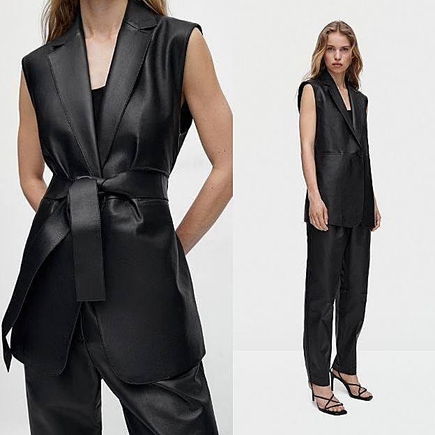 Finalizamos con una pieza tan elegante y especial que es imposible que no te enamores de ella y está disponible en Massimo Dutti. Es este chaleco blazer confeccionado en piel napa, con cuello solapa de muesca, cierre mediante botón, dos bolsillos laterales y cinturón combinado en el mismo material, color negro. Lo encontrarás en las tallas S, M y L por un precio de 249 euros.
