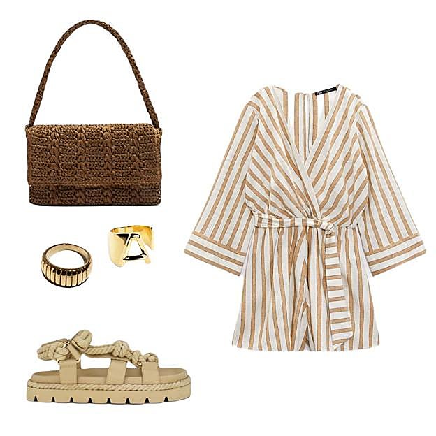 De turisteo por cualquier ciudad. Y da igual que sea Nueva York que Madrid. Si tienes planeado ser una urbanita, tu look tiene que estar a la altura. Decántate por un mono fresquito como este de lino con rayas verticales (Zara), unas sandalias comodísimas que te permitan caminar durante horas (Exé Shoes), un bolso a juego para guardar lo que necesites (Parfois) y un par de anillos que siempre completan cualquier look (Joys y Singularu).