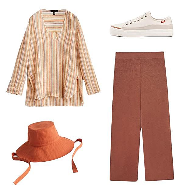 Jornada intensiva. Los interrailes están de moda. Pocos días, muchos destinos y un estrés de vacaciones que luego deja resaca emocional. Es una experiencia apasionante, pero has de estar preparada porque puede que te encuentres destinos con climas muy diferentes. Apuesta por un conjunto de lino de camisa (Massimo Dutti) y pantalón (Adolfo Domínguez), con unas deportivas cómodas (Levi's) y un bucket hat (&Other Stories), el accesorio de moda.