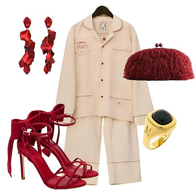 En tonos pastel y con colores de la primavera, este look nos parece una muy buena opción. El pijama es de Carmen Says (98,80 euros), y las merceditas de Flabelus (98 euros). Completa tu look con los accesorios adecuados: un bolso insignia; Polène (420 euros); unos pendientes preciosos: Vidal&Vidal (52 euros). Marcarás la diferencia.