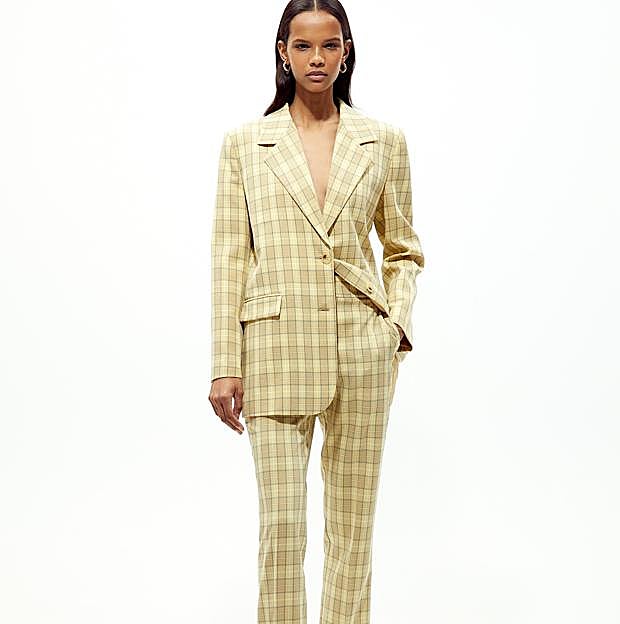 El príncipe de Gales será siempre un sinónimo de éxito seguro si está estampado sobre un traje. Este con americana de botonadura simple, que cuesta 59,99 euros y está disponible en tallas S, M y L tiene un corte ajustado y preciso. Se combina con un par de pantalones rectos (que cuestan 35,99 euros) y ligeramente abiertos en el bajo. Un largo ideal para combinar con tacones porque deja al aire los tobillos.