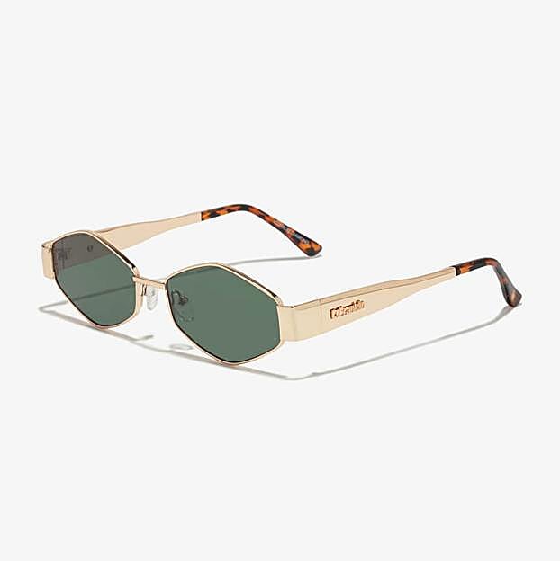 Las Ray-Ban Kai Bio-Based, con su elegante montura de color oro pálido, presentan un diseño metálico con forma ovalada, perfecto para añadir un toque extra de elegancia a cualquier atuendo. Las lentes en verde liso no solo garantizan un color y una nitidez óptimos, sino que también complementan a la perfección el tono dorado pálido de la montura. Precio: 137 euros en Sunglass Hut.