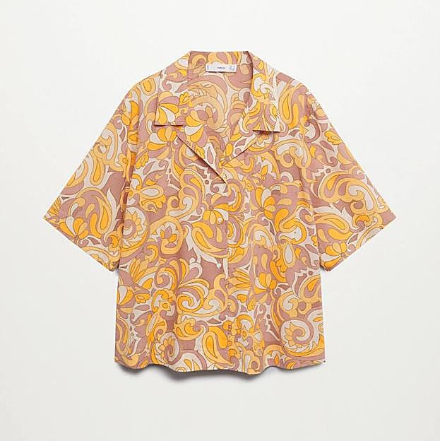 Su primera apuesta es un conjunto de estética retro de los años 70. Un dos piezas de algodón (se vende por separado) que se caracteriza por un estampado psicodélico y con flores, en tonos naranja, amarillo, rosa y blanco. Se compone de una camisa de manga corta super en tendencia, a la que Lipovetsky le da su toque personal, llevándola anudada. La puedes conseguir por 25,99 euros. La parte inferior es un pantalón a juego de tiro alto y bajo acampanado que sienta bien a cualquier figura. Ahora está rebajado a 19,99 euros.