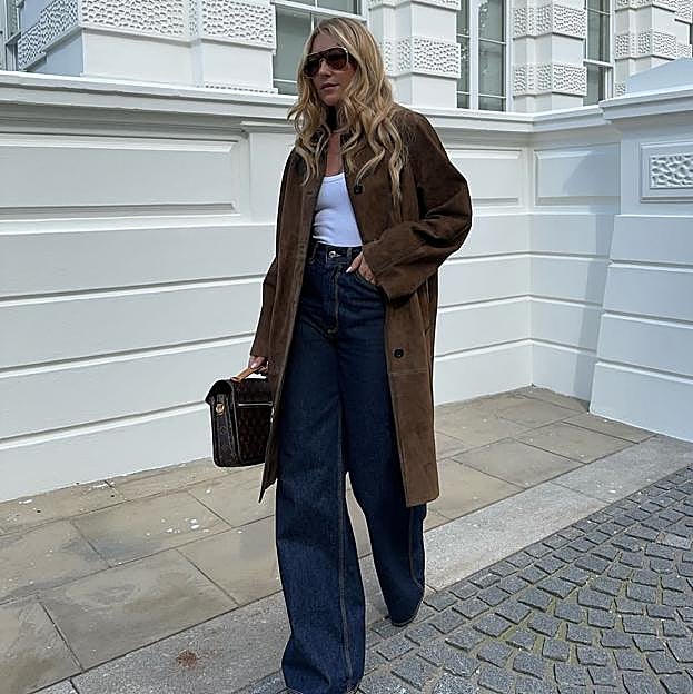 Tank top blanco y chaqueta larga de ante. La verdad es que pensamos que es un look muy favorecedor que combina con todo. Además, son colores que juntos resultan muy elegantes y es un estilismo que se adapta bien a cualquier estilo y edad.