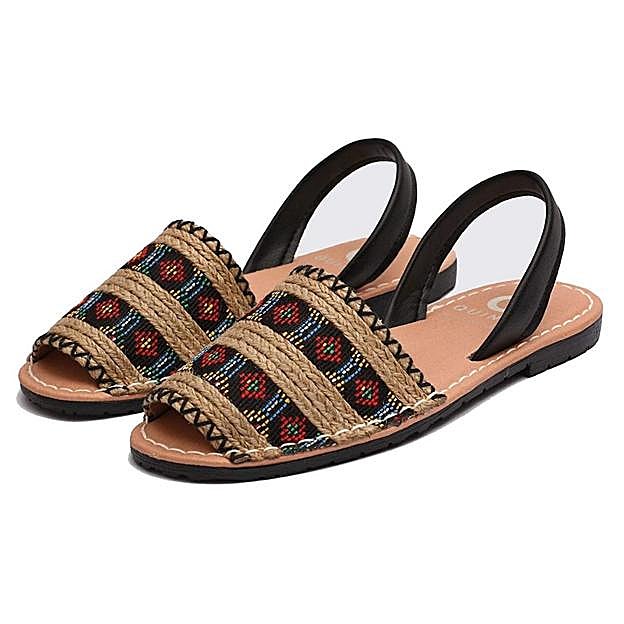 La firma de calzado Mibo ha lanzado su colección de verano en la que puedes encontrar sus abarcas clásicas en multitud de tejidos y estampados. Destacan sus modelos con plataforma adornados con cadenas, lazos extra grandes, tiras trenzadas, estampado animal, crochet o las rayas marineras. Estas cuestan 43,40 euros.