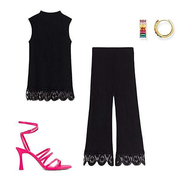 Si eres de las que está pensando en pasarse al lado de los conjuntos de dos piezas, pero estás buscando un modelo ponible, versátil y favorecedor, presta atención a este conjunto de top sin mangas y pantalón que hemos encontrado en Sfera.