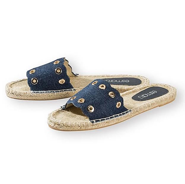 También hay disponible otro modelo con el mismo tipo de acabado en rafia, pero con las tiras en denim. Tiene unos brocados en la zona de la tira, y un acabado muy especial. Son un tipo de sandalia muy fácil de combinar que puedes llevar con vaqueros, vestidos, faldas o incluso shorts.