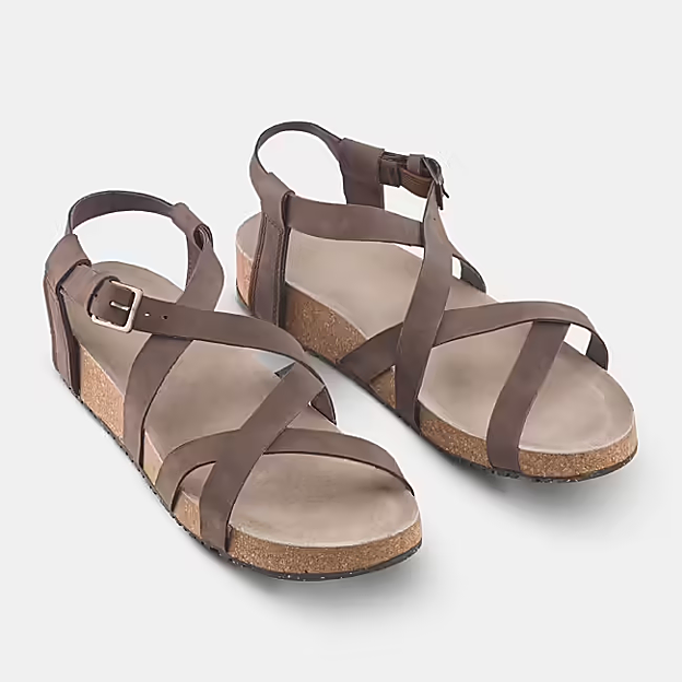 Son unas sandalias de tiras cruzadas en el empeine con cierre de hebilla que están fabricadas con correas de piel, que se adaptan a todo tipo de pies, y con pocas costuras lo que evita las infernales rozaduras y que aportan confort y suavidad en la pisada. Además, tienen una plantilla mullida que busca la máxima comodidad posible.