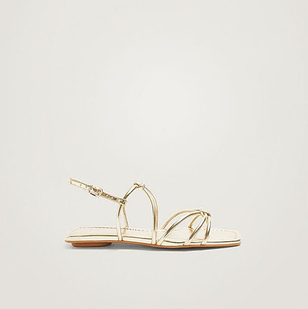 Se trata de unas sandalias planas que ha lanzado la marca portuguesa. Después del éxito de su colección cápsula de bodas, ha querido crear un zapato cómodo, elegante y apto para llevar también (si te apetece) en estos eventos tan especiales. Es una sandalia plana con tiras y detalles de nudos. Cuenta con un cierre de hebilla mediante pulsera que permite mayor sujeción en la zona del tobillo.