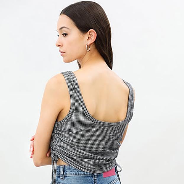 Con tirantes medios y escote redondo, este top crop con estampado de mini cuadro vichy está confeccionado en un tejido muy cómodo.