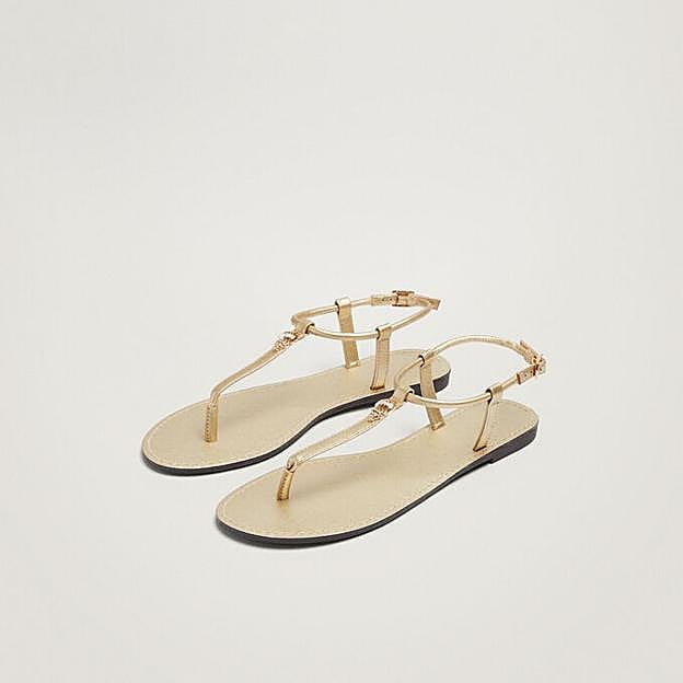 Comenzamos con unas sandalias doradas de tiras muy sencillas de la marca portuguesa Parfois. Cuestan 12,99 euros y, además de tener buen precio, son tan versátiles que podrás llevarlas con prácticamente todo tu armario.