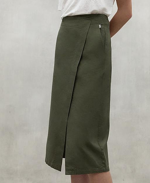 La falda Shiro de Ecoalf está confeccionada con 61% de algodón orgánico cultivado de manera natural que permite reducir el uso de agua empleada en su producción. Además está hecha de 21% lino y 18% TENCEL™ LYOCELL, una fibra vegetal que proviene de la pulpa de la madera de bosques certificados como bio-based. Precio: 115 euros.