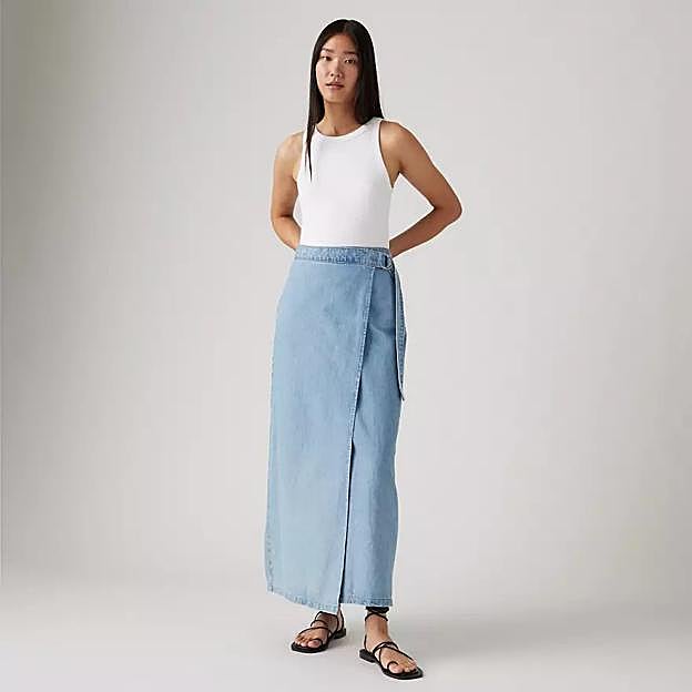Cambia tu combinación de jeans y camiseta por esta falda de Levi's. Tiene el tiro medio perfecto, un diseño cruzado y una longitud hasta el tobillo. Precio: 99 euros.