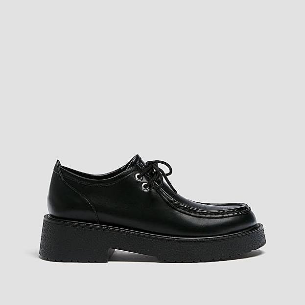 Por último, los zapatos Oxford modernos que más se llevan están en Pull&Bear. Color negro, cordones tipo wallabee, suela gruesa con tacón y acabado efecto piel, con un coste de 39,99 euros. Con un traje o un pantalón masculino amplio con maxi camisa blanca y cinturón, será toda una influencer escandinava.