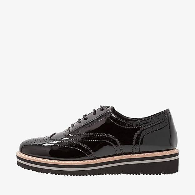 En Zalando encontramos un modelo de cuero perforado con costura decorativa, acabado lustroso, cierre de cordones y plataforma plana, disponible en 2 colores negro y burdeos (aunque también hay un diseño con ante en negro), de la marca Anna Field, con un precio de 39,99 euros. Ideales junto a un vestido corto romántico con cuello bobo y una chaqueta de cuero para un outfit rejuvenecedor.