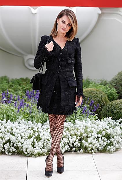 Penélope Cruz elegía para la presentación de la película 'Madres Paralelas' un bonito look formado por un conjunto de chaqueta y falda de tweed de Chanel en color negro. Un estilismo elegante al que aportó ese toque casual y rockero añadiendo unas medias de rejilla y unos zapatos de tacón con plataforma. En concreto, un modelo satinado muy 2010 con tacón fina y punto redondeada.