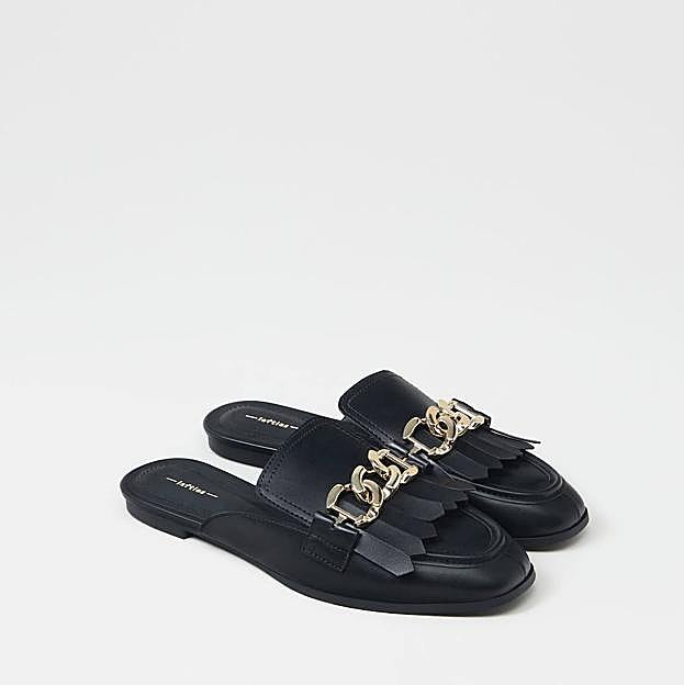 Si tienes un estilo muy clásico, elegante y minimalista, pero siempre a la vanguardia, te recomendamos estos zapatos estilo mocasín planos con diseño destalonado. Tienen detalle de flecos en la parte delantera y un adorno de cadena de eslabones en tono dorado. Super tendencia, son un must have según el street style. Su precio es de 17,99 euros y lo puedes encontrar en blanco o negro.