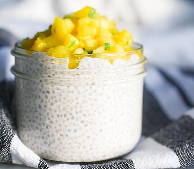 El pudding de chía es la manera más sabrosa, sana y rápida de tomar esta semilla. Solo necesitas leche de coco (puede ser de soja o de almendra, la que más te guste) y un tarro con tapa. Prepáralo la noche antes y déjalo reposar en el frigorífico. Te levantarás y tendrás un desayuno saciante, saludable y rico en menos de un minuto. Lo que tardas en abrir la tapa.
