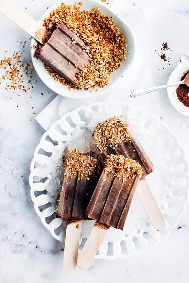 Qué ricos están los helados y qué ganas de hincarles el diente. Elige sorbetes o helados de hielo con zumos de frutas o, si estás en casa, puedes elaborar tus propios helados con fruta, semillas de chía, hierbabuena, bebida de avena, chocolate negro… ¡imaginación al poder! ¿Quién dijo que los helados engordan?