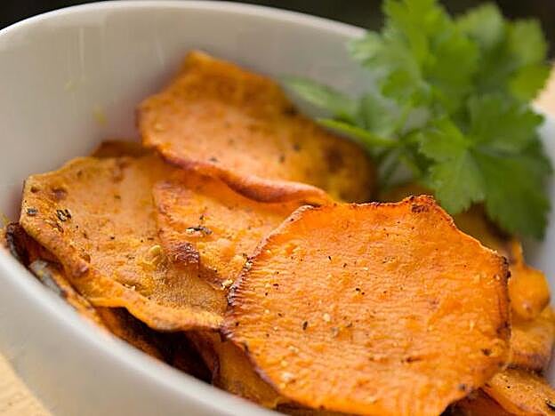 ¿Cómo puedes sustituirlas? Haciendo tus propias chips vegetales en casa. Corta en láminas muy finas las verduras, rocíalas con una cucharadita de AOVE y sal, y hornéalas en lugar de freírlas.