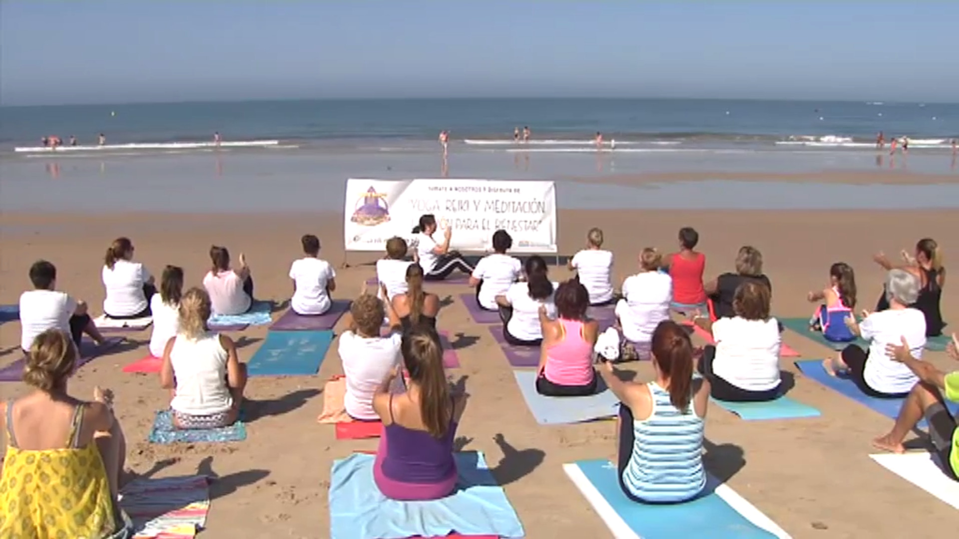 El yoga ha conquistado las playas de toda España. Lo que empezó siendo una moda es ya un hábito más que saludable que se practica, sobre todo, en los meses de verano. Cada vez es más frecuente que los bañistas compartan arena con los aficionados a este deporte.-Redacción-