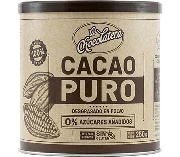 El cacao en polvo puro de Mercadona lo encontrarás con el nombre de la Chocolatera y su fabricante no es otro que la reconocida marca de chocolates Valor. Es un cacao puro en polvo que no lleva azúcares añadidos ni ninguno de esos ingredientes poco sanos de los que huyen los que abogan por la comida real. Es un producto que da mucho juego, tanto para hacer postres como brownies saludables, bizcochos, tortitas, añadir en yogures, porridge, o hacer un vaso de bebida vegetal con cacao con un chorlito de sirope de ágave. La alternativa más saludable a los cacaos en polvo tradicionales que están llenos de ingredientes poco o nada saludables.