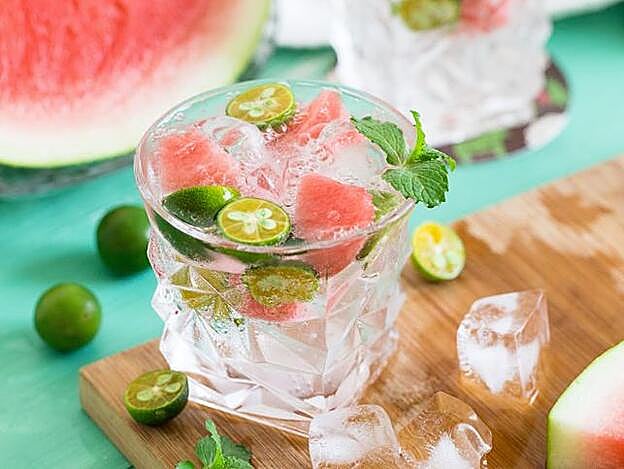 Gaseosa light, hielo y fruta fresca congelada como la sandía, el melocotón o las fresas puede crear el vaso perfecto. Combinalo con lima. Todo un acierto.
