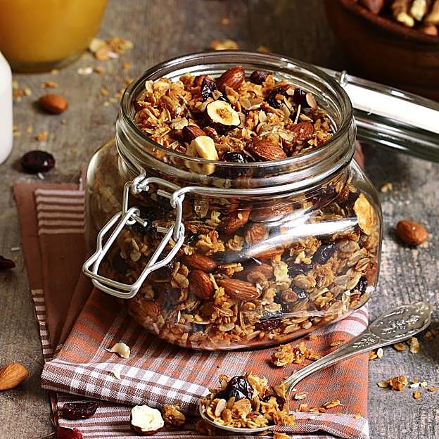 Es una gran fuente de fibra (una taza de granola puede aportar hasta 4 gramos), por lo que mejora la función intestinal, combate el colesterol y ayuda a controlar el azúcar en sangre. Además, las grasas saludables de su composición nos aportan muchísima energía, lo que lo convierten en un alimento muy saciante, por lo que la tentación de picar entre horas disminuirá.