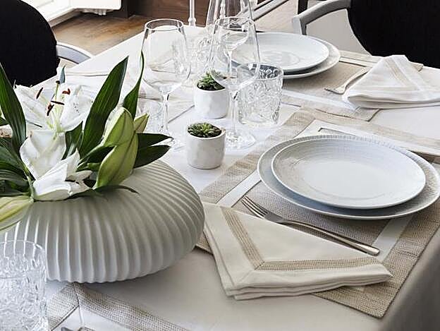 Uno de los trucos deco de Chábeli Iglesias infalible en estas fechas es "combinar una mantelería de un juego con las servilletas de otro que combine con la vajilla. Siempre resulta llamativo y divertido". Además, apuesta por "los individuales y los caminos puestos sobre el mantel para ayudar a protegerlo" y asegura que como elementos decorativos no deben faltar en una mesa "un centro de flores y unas velas si es de noche, porque ayudarán a dar una mayor calidez. Si queremos optar por la sofisticación, unos candelabros y bajo platos".