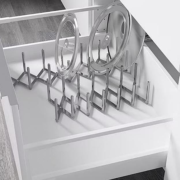 Tener las tapas de las ollas y cazuelas en un cajón no significa que estén bien ordenadas. Muchas veces las prisas o simplemente la pereza nos hace tirarlas sin ningún tipo de consideración. ¿En consecuencia? Encontrarlas cuando las necesitamos se convierte en un infierno. Horas, horas y horas de búsqueda que podríamos estar implementando en otras tareas. Pero el gigante sueco ha aparecido con su diseño Variera, un soporte para tapas perfecto para colocar dentro de los armarios que cuesta 8€.