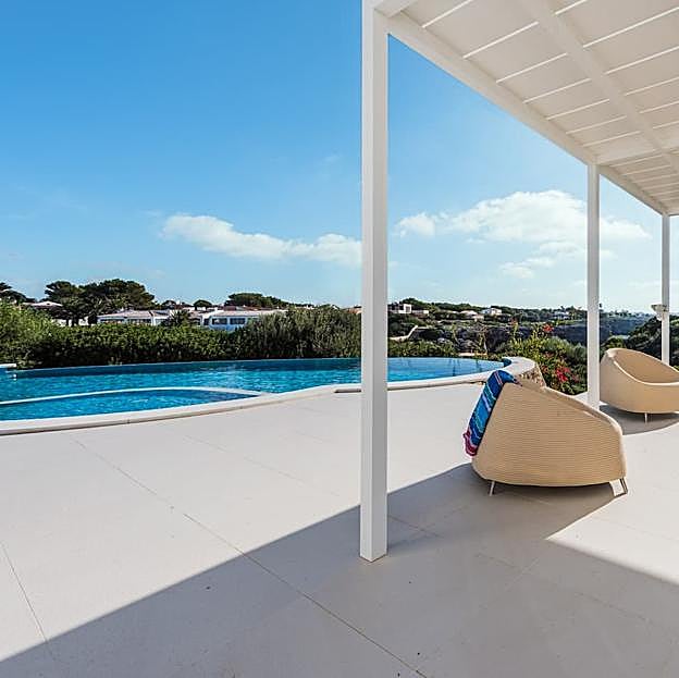 Esta casa en Menorca cuenta con un diseño contemporáneo, sofisticado y muy elegante. A pesar de todos los elementos de diseño, el blanco sigue siendo uno de los tonos protagonista de este enorme casa.