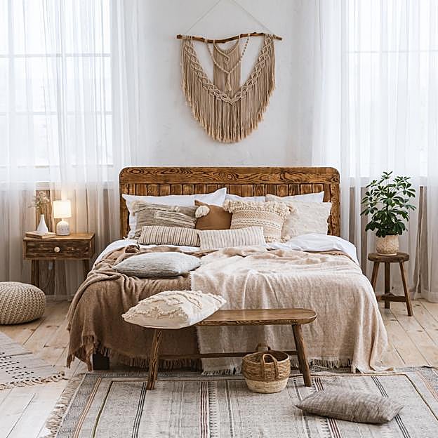 Madera, cuero, fibras vegetales, textiles de algodón, plantas, detalles de cristal, cerámica... esto es otra de las características que comparte con el estilo boho chic, donde no puede faltar lo natural. Salpica la decoración con elementos de la naturaleza y propuestas DIY para crear una atmósfera acogedora.