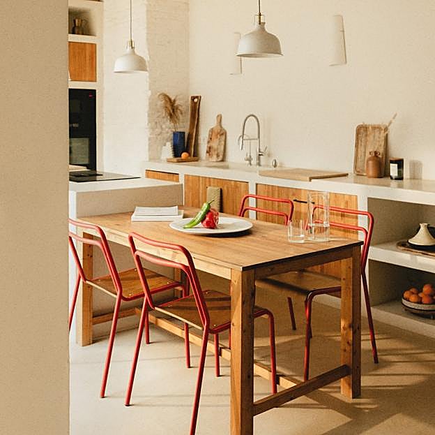 Las sillas de la cocina: en la cocina también se puede aplicar esta técnica. En el caso de que cuentes con una mesa de comedor en esta estancia, una forma sencilla pero muy eficaz de introducir color, es a través de las sillas. Y ya si cuentan con un diseño de estilo retro, mejor que mejor.